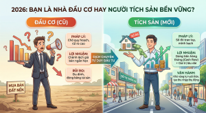 Năm 2026, thị trường bất động sản Việt Nam đã đi qua những giai đoạn sốt đất ảo và sự thanh lọc của các chính sách pháp lý mới. Đầu cơ – hành vi mua vào và chờ đợi tăng giá trong ngắn hạn dựa trên tin đồn – gần như không còn đất diễn. Ngược lại, tích sản là việc chuyển đổi dòng vốn nhàn rỗi vào những loại hình bất động sản có khả năng tồn tại, phát triển và tạo ra lợi ích kinh tế lâu dài.